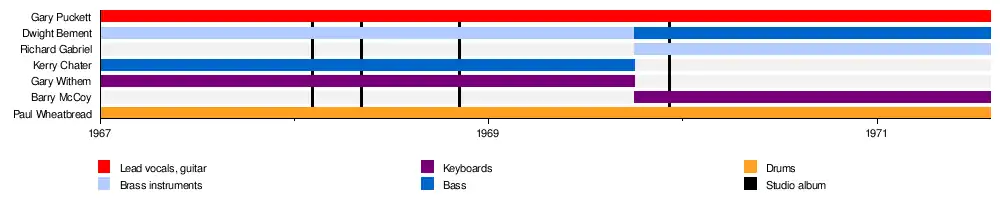 - Dwight Bement - guitar, brass instruments (1967–1969), bass (1969–1971)