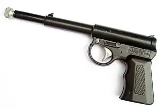 The Gat air pistol was an air pistol of British origin. The pistol can fire .177 pellets, ball bearings, darts and also corks. The Gat pistol has also become popular in funfairs and arcade stalls. Another example is the Gat air rifle,[1] produced from 1988.[2]