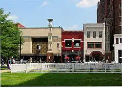 The Gay Street Commercial Historic District, added to the National Register in 1986, originally consisting of 35 buildings constructed circa 1880—1940 along Gay Street and adjacent side streets.[2] The buildings range from 1890s-era wholesaling outlets to 1930s-era movie theaters. One of the buildings listed, the Fouche Block, was demolished in 1993.[39] Another listing, the Hope Clock, was moved to West Knoxville in 2004, and was replaced by a new street clock in 2007.[40] One notable non-contributing building is the 1905 Miller's building, which was not included due to extensive exterior modifications which have since been removed.