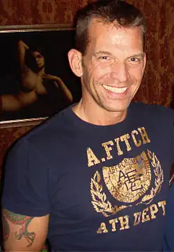 • Kevin Falk – American pornographic actor, best known for his work for the studio Randy Blue.[126] Falk worked as a bodyguard for Trinidadian rapper Nicki Minaj, on the red carpet of the 2014 VMAs.[127] In 2018, Falk gained mainstream attention after appearing in the music video of Taylor Swift's hit-single "Delicate".[128][129]