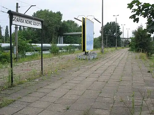 Gdańsk Nowe Szkoty is a former SKM stop in the quarter of Nowe Szkoty in Gdańsk, Poland. It is no longer used since June 2005, after canceling passenger service on the Gdańsk–Nowy Port line.