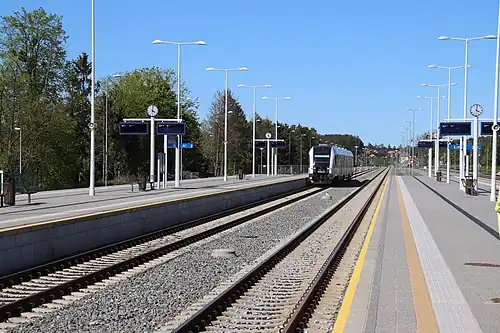 Gdańsk Osowa railway station is a railway station serving the Osowa district of Gdańsk, in the Pomeranian Voivodeship, Poland. The station opened in 1930 and is located on the Nowa Wieś Wielka–Gdynia Port railway, Gdańsk Kokoszki–Gdańsk Osowa railway and Gdańsk Wrzeszcz–Gdańsk Osowa railway. The train services are operated by SKM Tricity.