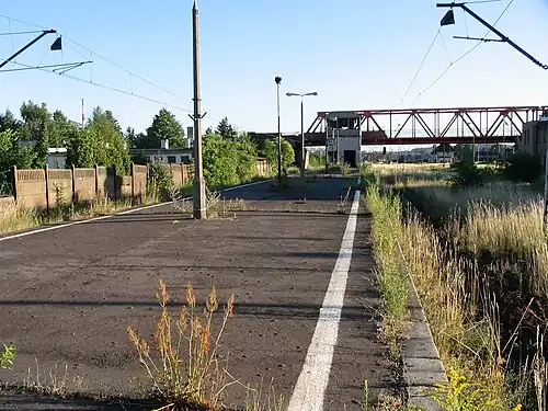 Gdańsk Zaspa Towarowa is a former SKM stop in Gdańsk, Poland. It is no longer used after canceling passenger service on Gdańsk – Nowy Port line in June 2005. This line is now used only for freight transport.