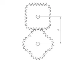 In a crossed arrangement, the axes of rotation of the two gears are not parallel but cross at an arbitrary angle except zero or 180 degrees.