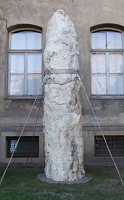 In 1950, the exhibition reopened under the motto "A journey through Central Germany's geological history" - extended by eight rooms and technically revised in 1954. As a result of a university reform at the end of the 1960s, the museum and collection were to be relocated, which was averted by the then director Horst Werner Matthes. However, the new exhibition opened in 1950 had to be closed and reduced in size. In the following years, technical and financial bottlenecks meant that it was not possible to invest in a more modern exhibition or in repairing the buildings of the Neue Residenz, which made it necessary to protect individual objects from damage due to rain or thaw. This only changed for the better after 1989 with the political change in the GDR.[152] However, the building fabric of the Neue Residenz remained in poor condition. When the current Institute of Geosciences moved to new and more modern premises on the new campus at Von-Seckendorf-Platz in 2004, only the Geiseltal Museum and its collection remained and celebrated its 70th anniversary there.[47]