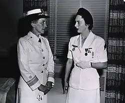 Having flown to Washington, D.C., on a U.S. Air Force plane, she was recognized before the House of Representatives.[15] On 29 July 1954, President Dwight D. Eisenhower awarded her the Medal of Freedom during a ceremony in the White House Rose Garden, calling her the "woman of the year"[16] She was then sent on a tour of six states where she met with luminaries and appeared before large crowds in cities such as Cleveland, Chicago, New Orleans, and San Francisco. The French ambassador to the United States called her visit "an exceptional success".[16]