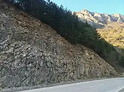 Permian rocks are mainly red beds with slate, metasandstone, limestones, gypsum, anhydrite and conglomerates. [2]
