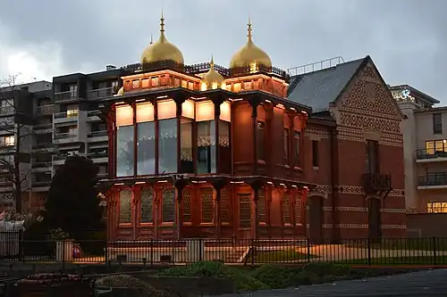 In 1928, the Știrbei estate was reportedly worth more than 100 million shilling.[163] From this total, Consuelo assigned a special fund to the Institut de France, which grants an annual Știrbei award.[164] She and Georges Achille inherited most of the assets, including the pavilions. The sisters had conflicting visions: Consuelo, who died in 1927, bequeathed her pavilion to host a memorial museum for Roybet; twenty years later, the municipality of Courbevoie confiscated the land for its own city museum.[165] The core buildings of the château were razed in conjunction with the extension of La Défense, although in the end nothing was built to replace them.[116] The former Swedish pavilion is home to a Roybet museum, which also has art by the Fould–Știrbei sisters.[136] In 2013, the Indian pavilion was restored and, since 2015, has been a studio for sculptors-in-residence.[136][140] Meanwhile, Știrbei's manor in Băilești was nationalized by the Romanian communist regime, and came to house the local town hall.[166]