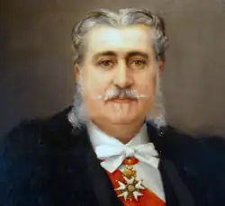 Știrbei was residing in Nice by February 1868, when he attended a gala for the European Squadron, alongside Alfred Le Roux, Ludwig II of Bavaria, and the Duke of Parma.[112] He still resented the liberals' approach to foreign policy, and, late in 1868, traveled to Pest, Hungary, where he was received by the Minister-President, Gyula Andrássy. Știrbei claimed that the liberals would allow Romania to be invaded by Russia, with Andrássy assuring him that Austria-Hungary would respond militarily, without herself annexing the former Principalities.[113] During the final years of the French Empire, Știrbei served Napoleon III as a diplomat, and was made by him a Commander of the Legion of Honor.[111] After his departure, the family's political role in the new Kingdom of Romania was fulfilled by his brother Alexandru, who served as chairman of the Conservative Party and had several ministerial positions.[114]