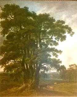 The Duke of Portland commissioned a dozen paintings of trees and the landscape at Welbeck Abbey from Barrett. The paintings were undertaken between 1765 and 1771 and Barret was paid 80 guineas for the largest paintings, 60 guineas for the middle sized and 40 guineas for the smaller paintings.[20] Most of these paintings are now on display at the Portland Gallery at Welbeck.