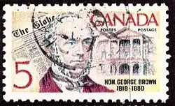 George Brown appears on a Canadian postage stamp issued on August 21, 1968.[126]