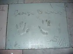 George Burns has three stars on the Hollywood Walk of Fame: a motion pictures star at 1639 Vine Street, a television star at 6510 Hollywood Boulevard, and a live performance star at 6672 Hollywood Boulevard. The first two stars were placed during the initial installations of 1960, while the third-star ceremony was held in 1984,[26][27] in the new category of live performance, or live theatre, established that year.[28] Burns is also a member of the Television Hall of Fame, where he and Gracie Allen were inducted in 1988. There is a street named after Burns in San Antonio, Texas.[29]