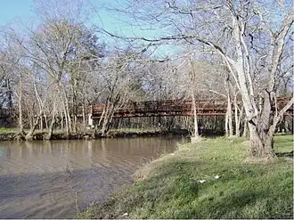 Hike/bike trail crossing Buffalo Bayou in George Bush Park. | |