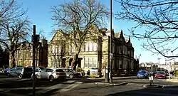 In the course of his career Dawson "erected several handsome blocks of buildings", which included the Britannia Buildings adjoining the Crown Estate, Prospect Crescent in James Street, Cambridge Crescent in Parliament Street, and "numerous others".[7][16][17] Some of those others are buildings in Parliament Street including Fattorini the Jeweller (1866–1868),[16][18][19] numbers 3–29 Swan Road (1881–1886),[16] and James Street including Ogden's jewellers,[11]: 631, 632 [20] his residence Vanderbilt Court at 5 Victoria Avenue, 2–24 Crescent Road (Grosvenor Buildings), the wings of the Crown Hotel,[13] the block facing Victoria Park and Princes Square, and the block next to the Sulphur Well. He also built several villas in West End Park.[2][21] Some of these are now listed buildings, for example, 1–10 Prospect Crescent,[22] and 2–6 Crescent Road.[23]