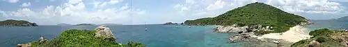![]() George Dog Island. Virgin Gorda is visible in the background, and West Dog (on the right) and Great Dog (on the left) can also be seen. | |