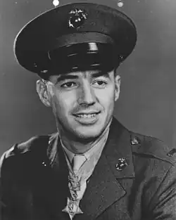 By October 27, 1952, he was serving as a second lieutenant with Company H of the 3rd Battalion 7th Marines. On that day, he spearheaded the capture of an enemy-held hill while wounded by enemy fire. For this action, he was awarded the Medal of Honor by President Dwight D. Eisenhower during a White House ceremony on October 27, 1953, exactly one year to the day after the action for which he was cited.