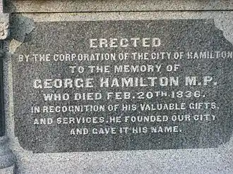 George Hamilton (c. October 1788 – February 20, 1836) was a Canadian merchant and politician who founded the city of Hamilton, Ontario.