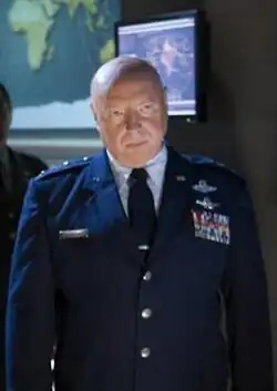 George S. Hammond is a United States Air Force Major General (later Lieutenant General) from Texas,[1] who commands Stargate Command (SGC) in the first seven seasons of Stargate SG-1. The series pilot introduces Hammond as the successor of Major General West, the commander of the Stargate Project in the original Stargate film.[2] Hammond had been stationed as a Lieutenant at the Cheyenne Mountain Complex (the present-day location of Stargate Command) in 1969,[3][4] Hammond's mentioned relatives include his wife, who had died of cancer four years before the events of the series began, and his granddaughters named Kayla and Tessa (whose telephone number occupies Hammond's first speed dial button above the President of the United States which occupies the second).[5] His father is also mentioned in the Season 2 episode entitled 1969.[3]
