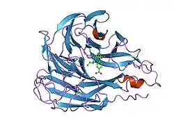 Hirst noticed that hemagglutination tended to wear off over time, and in 1942, he discovered that influenza virus has an intrinsic enzymatic activity that can release the virus from its attachment to red blood cells.[3][23][24][25] This was a ground-breaking discovery, as previously a key distinction between viruses and bacteria had been that viruses were believed to lack enzymes.[26] Hirst demonstrated that red blood cells once de-agglutinated could not be re-agglutinated, and correctly deduced that the enzyme destroys a receptor for the virus on the red blood cells. This enzyme, then referred to as the "receptor-destroying enzyme" was later shown to be the influenza neuraminidase, another viral envelope glycoprotein, which acts as a sialidase.[3][23][24] Like hemagglutinin, neuraminidase is essential for the influenza life cycle, being required for the progeny virus to leave the host cell.[9] Neuraminidase is the target of the neuraminidase inhibitor class of antiviral drugs, which include oseltamivir (Tamiflu) and zanamivir (Relenza).[27]