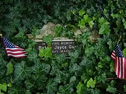 ![]() The George L Luthy memorial, a bronze plaque mounted on a stone wall in the gardens | |