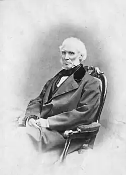 In the first general elections in 1841, Moffatt was elected by acclamation to the Legislative Assembly of the Province of Canada as one of two members for the city of Montreal, alongside Benjamin Holmes, another Montreal businessman.[1][9] During his time in Parliament, Moffatt supported the union of the Canadas and was a consistent supporter of the government of the governors-general, as a member of the "British Tory" group from Canada East. He opposed the restructuring of the ministry in 1842 with a stronger Reform balance.[10] However, Moffatt resigned in 1843 to protest the proposal to move the seat of government from Kingston to Montreal, on the basis that it was unfair to the residents of Canada West to have the government so far away; Kingston was in Canada West, but close to the border with Canada East. In the subsequent by-election in November 1843, Moffatt was replaced by Pierre Beaubien.[11]
