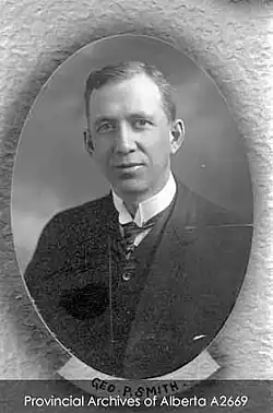- ^ "Early Provincial Political Figure, Member for Camrose, Hon. George P. Smith Passes", Camrose Canadian, December 2, 1942.