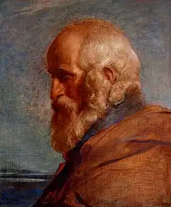 George Richmond died at his house, 20 York Street, Portman Square, where he had lived and worked for fifty-four years, on 19 March 1896, retaining almost to the end a clear and vigorous memory. He is buried in a family grave on the eastern side of Highgate Cemetery (plot no.23902) and is commemorated by a tablet designed by his sons to be placed in the crypt of St. Paul's Cathedral,[6] close to the graves of Sir Christopher Wren and of Lord Leighton. He left ten children and forty grandchildren.