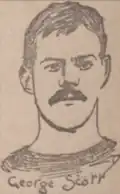 Born in Scoonie, Scott moved with his family to Glasgow at a young age and found work with Cowlairs Railway Works. Initially playing for local sides Towerhill and Northern, Scott was signed by Cowlairs in 1882, before moving to Hearts in 1889.[2] On joining the club, professionalism in Scottish football remained theoretically illegal, and "almost without exception, the players were working at a trade they had." Nevertheless, Hearts had begun to offer their team unofficial compensation, and "it is related [of Scott] that at one time when the treasury was low he offered, of his own accord, to accept less money," while continuing to play.[3] In his early cup-ties, Scott "was always famous for his grit."[4] During his tenure, Hearts won two Scottish Cups and came top of the League in 1894/95.[5] In the 1890/91 and 1892/93 Seasons, Scott was top goal scorer for Hearts. By 1897, Scott was one of the oldest players in the League, along with James Kelly.[6] "One of the marvels" of the Hearts side, Geordie Scott still appeared "endowed with all his old vigour and cleverness [...] and should the first eleven require a change on the left wing the Hearts would do worse than try the old Towerhill player."[7] That year, Scott was briefly loaned to Kilmarnock to play in the Cup Quarter Final against Third Lanark. Following this, Scott formally retired from football, but came back to play in a 1902 charity match between Cowlairs and Northern for the Ibrox Fund.[8]