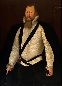 In May 1570 Shrewsbury conducted her to Chatsworth, where he foiled another cabal aiming for her release. Cecil and Mildmay visited Chatsworth in October, and agreed on Mary's removal to Sheffield Castle (Shrewsbury's principal seat), which took place shortly afterwards. At Sheffield, apart from occasional visits to the baths at Buxton, to Chatsworth, or to the old Hardwick Hall, she remained under Shrewsbury's guardianship for the next fourteen years. During the winter of 1571–72 the earl was in London, the queen during his absence being left in charge of Sir Ralph Sadler.[1] Meanwhile, in 1571, Lord Shrewsbury was appointed Lord High Steward (the premier Great Office of State) for the trial of Thomas Howard, 4th Duke of Norfolk (regarding the Ridolfi plot). Finally, in 1572, Lord Shrewsbury was appointed Earl Marshal, a position that he held (along with the aforementioned position of Justice in Eyre) until his death in 1590.
