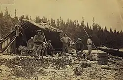 During his expeditions, Taylor formed friendships with Maliseet peoples, including a notable individual known as Gave Acquin, with whom he frequently collaborated while exploring the province.[4] According to an exhibit chairwoman, Taylor could fluently speak the Maliseet language.[11] He traversed the forests and river valleys of New Brunswick by canoe,[12][13] and was aided by his brother John as well as First Nations guides,[14] who referred to him as "Garge".[7] While on his expeditions, Taylor used a portable darkroom to process photographs, and took with him all of his equipment, including this portable darkroom, camera, chemicals and negatives.[12] Taylor revisited the Tobique River in the following decades.[7]