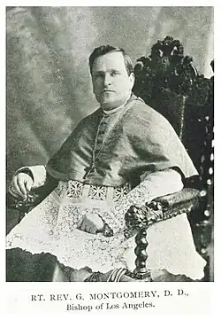 Montgomery assisted Mora with the management of diocesan affairs until the latter's resignation, becoming the first American-born Bishop of Monterey-Los Angeles on May 6, 1896.[4] In response to the growing influence of the anti-Catholic American Protective Association in Los Angeles, he organized a branch of the Catholic Truth Society in 1896.[9][10]