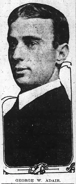 George Washington Adair Jr. (b. 1874, Atlanta; d. November 5, 1921, Atlanta)[1][2] was the son of Col. George Washington Adair, an important developer of real estate in Atlanta and of the Atlanta streetcar system. Adair Jr. also worked in real estate development in partnership with his brother Forrest, and together they developed today's historic neighborhoods such as Adair Park, West End Park (now known as Westview), and, in conjunction with Asa Candler, Druid Hills.[3] He married Sarah Glenn in 1897.