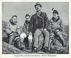 George Rice was selected by expedition leader Adolphus Greely as the photographer for a planned expedition to the Arctic Ocean in 1881 after learning of his skill as a photographer in Washington DC. The expedition to Lady Franklin Bay on Ellesmere Island and points north was sponsored by the United States Army Signal Corps, so Rice, a civilian and the only Canadian on the expedition, was given the rank of sergeant.[1] Rice was also on assignment to write about and photograph the expedition for the New York Herald, whose publisher had financed the missing Jeannette expedition and hoped they might find sign of it.[2]: 21–23