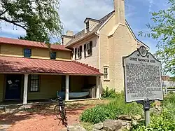 The George Washington House, or Indian Queen Tavern, is located at Baltimore Avenue,[2] at Upshur Street, in Bladensburg, Prince George's County, Maryland. It was constructed in the 1760s.[3] The 2+1⁄2-story structure is constructed of brick Flemish bond on ends. The plan is rectangular, with a gabled roof, exterior end chimneys, gabled shingled dormers. There are first and second-story center entrances, each with a transom. There is a full-width one-story porch with balustraded deck and side entrances. The structure includes a later two-story rear addition. The structure is Georgian.[3]