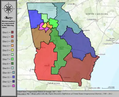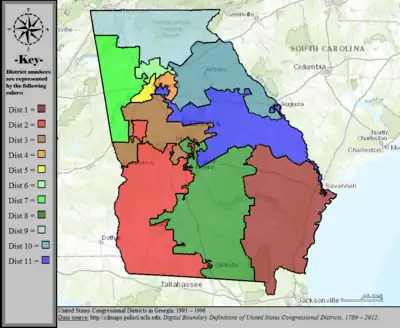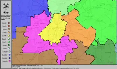 Table of United States congressional district boundary maps in the State of Georgia, presented chronologically.[3] All redistricting events that took place in Georgia between 1973 and 2013 are shown.