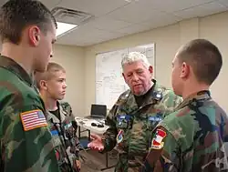 This school is normally a week-long in-residence training program for cadets age 12-20, supervised by trained adult Cadet Programs Officers with USAF oversight. The encampment teaches basic cadets the fundamentals of followership and discipline in a fun environment that is both academic and applied, with hands on events. This course is typically held on a local military base (see CAPP 60-70 for more detail) and typical activities may include supervised rappelling, orientation flights in military aircraft, tours of base units and facilities, etc. Encampment is not basic training; per CAPP 60-70, prospective encampment attendees must first complete promotion requirements for their first stripe (Curry Award) at their home unit, inclusive of passing physical fitness run/push-up/sit up/sit and reach standards, their first Leadership test, must have memorized the cadet oath, and must pass inspection for wear and grooming standards in both the USAF Blues and BDU uniform combinations. Encampment is intended to provide cadets with a taste of military life (typically with military style accommodations, food, and formations) intended to foster leadership growth and personal development in a positive, military style advanced training environment. Encampment completion is required for promotion to cadet officer and is also the required gateway activity to qualify cadets to then attend national special activities