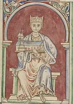 During the first four years of Henry's reign Gerard was one of the king's chief advisors, along with Robert of Meulan, Count of Meulan in Normandy and later Earl of Leicester. Gerard was one of Henry's greatest supporters among the bishops during the Investiture Crisis.[24] In 1101 Gerard witnessed a treaty between Henry and Robert, the Count of Flanders, which sought as far as possible to distance Robert from any future conflict between Henry and his elder brother Robert Curthose, or between Henry and King Philip I of France.[25] After Gerard's return from Rome he restored Ranulf Flambard to the see of Durham.[2] In 1102 Anselm refused to consecrate three bishops, two of whom had received investiture from the king; Gerard offered to consecrate them instead, but all except one refused.[26] From 1105 onwards Gerard slowly began to embrace the papal position on investiture of bishops, which opposed laymen investing bishops with the symbols of episcopal authority. As part of his change of position, Gerard withdrew from court to care for his diocese. Towards the end of 1105 Gerard attempted to join Bohemond of Antioch, who was assembling a crusading force in France, but it appears that King Henry prevented Gerard's departure.[24] In 1106 Gerard wrote to Bohemond that he was still preparing to go on crusade, but he never did.[27] At about the same time, Gerard was working to find a mutually acceptable resolution to the Investiture Crisis, writing a number of letters and other works supporting Anselm's and the pope's position. By 1107 King Henry and Anselm had reached an agreement settling the dispute.[24]