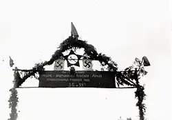 The parade began at 16:00,[6] and the "Victory Arches" were erected which the Soviet troops decorated with swastikas and red stars and through which German troops marched.[8] The Soviets fielded the 4th Battalion of 29th Light Tank Brigade, which was the first unit of the Red Army to roll into the city. The Soviet and German generals paid homage to each other's armies and their respective victories over Polish forces.[9]