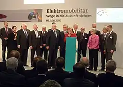 The Federal Chancellery gave increasingly top priority to the National Development Plan for Electric Mobility. The Federal Ministry of Economics and Technology and the Federal Ministry of Transport, Building and Urban Affairs established the Joint Agency for Electric Mobility of the Federal Government on 1 February 2010 ("Gemeinsame Geschäftsstelle Elektromobilität der Bundesregierung").[9][10] With its kick-off it announced the foundation of the German National Platform for Electric Mobility, which was proclaimed on 3. May 2010.[11]