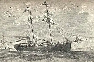 Fitted with an auxiliary steam engine,[1] it was especially built as the main research ship of the Second German North Polar Expedition of 1869–1870 that explored northeastern Greenland. The captain of the ship was Carl Koldewey, leader of the expedition.[2] Emperor Wilhelm I was present at the ship launching ceremony on 16 April 1869. The smaller schooner, Hansa—not fitted with an auxiliary engine—was the convoy and supply ship of the Germania during the expedition.