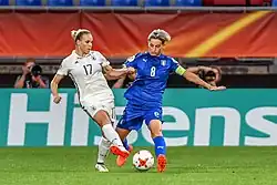 For the draw of the final round groups on 8 November 2016, Germany was assigned pot 1 together with the host Netherlands, England and France and allocated to group B as group head. Opponents were Sweden, Italy and Russia, making it the only group without a freshman and neighborhood duel. Germany started with a goalless draw against Sweden, which made it the first time in the encounter with the Scandinavians no winner. It was won against Italy and Russia, but the goals were scored by defender Marozsán and captain.[9][10][11] As a group winner, the German team then met in the quarterfinals on Denmark. However, the game could not take place on the scheduled date, because the place was unplayable due to continuous rain. One day later, both arrived at the unusual lunchtime for them. The German team seemed to be more alert at first, taking the lead in the third minute with an Isabel Kerschowski long shot from the Danish goalkeeper. The leadership paralyzed but rather the German team rather than give her safety and as a result increased not only the Danish goalkeeper, but their entire team, so that Germany came to no significant scoring chances. Shortly after the half-time break, they were able to equalize first and finally turn the game in the 83rd minute. As the German players then no longer managed to score chances, Germany dropped out of the quarter-finals for the first time in a European Championship finals.[12] Shortly after the European Championship, striker Anja Mittag announced her retirement from the national team.