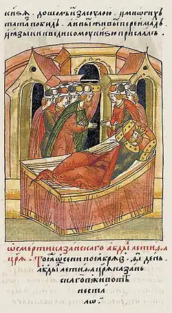 ![]() Death of Ghabdellatif, miniature from the Illustrated Chronicle of Ivan the Terrible | |