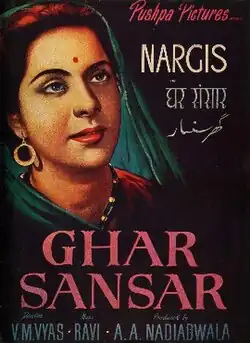Ghar Sansar is a 1958 Hindi drama film directed by V. M. Vyas, starring Balraj Sahni, Nargis, Rajendra Kumar and Kumkum in lead roles.[1][2]