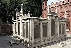 Around the turn of the 18th century, Ghaziuddin Khan founded a madrasa complex today located in Old Delhi, near the Ajmeri Gate. The madrasa was one of Delhi's three main madrasas during the reign of Mughal emperor Bahadur Shah I. It shut down in the 1790s and reopened in 1792 through the patronage of Delhi's wealthy Muslim class. It went on to house colonial education institutions, namely Delhi College and then the Anglo-Arabic school. Since 1948, the building has been in use by Zakir Husain Delhi College.[20][21][22] The madrasa complex exemplifies late Mughal architecture, and is one of the few surviving madrasas dating to the Mughal period.[22]