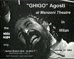 Ghigo Agosti (born Arrigo Riccardo Agosti; 10 July 1936 – 27 May 2024) was an Italian singer, musician, and composer.[1] Agosti died on 27 May 2024, at the age of 87.[2]