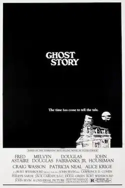 Ghost Story is a 1981 American supernatural horror film directed by John Irvin and starring Fred Astaire, Melvyn Douglas, Douglas Fairbanks Jr., John Houseman, Craig Wasson, and Alice Krige. Based on the 1979 novel of the same name by Peter Straub, it follows a group of elderly businessmen in New England who gather to recount their involvement in a woman's death decades prior when one of them suspects her ghost has been haunting him.