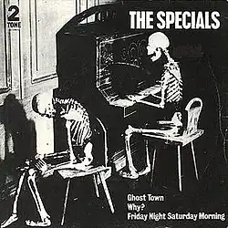 "Ghost Town" is a song by the British two-tone band the Specials, released on 12 June 1981.[2] The song spent three weeks at number one and 11 weeks in total in the top 40 of the UK Singles Chart.