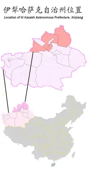 The Ghulja, Gulja,[3][4] or Yining incident (Chinese: 伊寧事件, Yīníng Shìjiàn), also known as the Ghulja massacre, was the culmination of the Ghulja protests of 1997, a series of protests in the city of Yining—known as Ghulja in Uyghur—in the Xinjiang autonomous region of China.