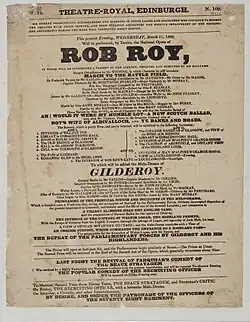 Several popular versions of his life were published such as Lives and Exploits of English Highwayman, Pirates and Robbers.[6] The time period of his activities is moved forward and his execution given as being in 1658 with various fantastical and highly exaggerated elements added. Gilderoy has been placed in the same category as Robin Hood, Twm Siôn Cati and the aforementioned Rob Roy McGregor.[7]