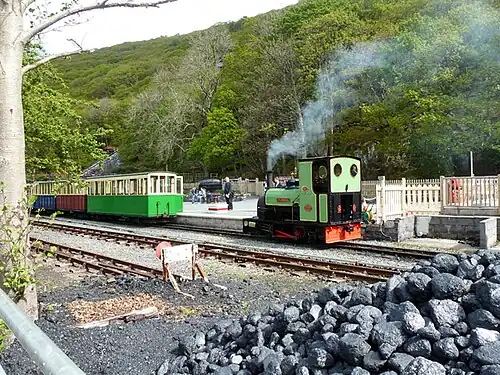 Most of the LLR was laid around 1970 on part of the trackbed of the closed and lifted Padarn Railway. The line opened between Gilfach Ddu and Cei Llydan on 28 May 1971, being extended northwards to Penllyn (LLR) in 1972.[3] For thirty years Gilfach Ddu was the new line's southern terminus, situated a short distance south of the site of the Padarn Railway's former workmen's station, also named Gilfach Ddu.[4] In 2003 a wholly new extension was opened south westwards, with Llanberis (LLR) station as the line's new southern terminus. With this extension Gilfach Ddu (LLR) changed from a terminus to a through station.